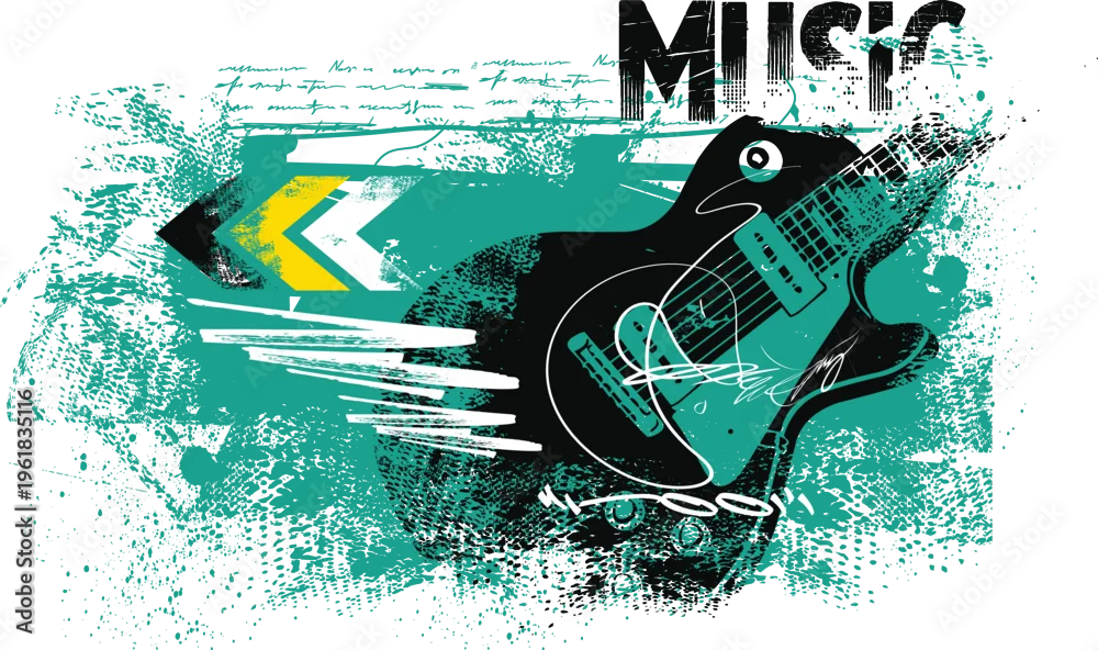 Fototapeta music, grunge illustration design, Guitar silhouette illustration grunge texture, typography street art graffiti, guitar symbolic image graffiti style, street art graffiti vector for graphic tees - do przedpokoju - Picturewall.pl
