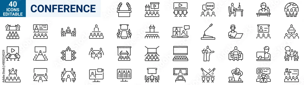 Fototapeta Seminar or Conference web line icons editable icons set. Conference icon set. vector illustration - do przedpokoju - Picturewall.pl