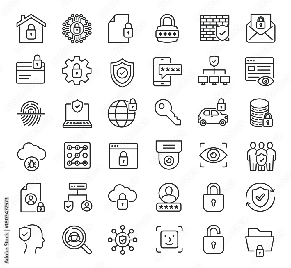 Fototapeta Set of collection line icons related Security and Protection. Editable stroke. Perfect pixel on transparent background - do przedpokoju - Picturewall.pl
