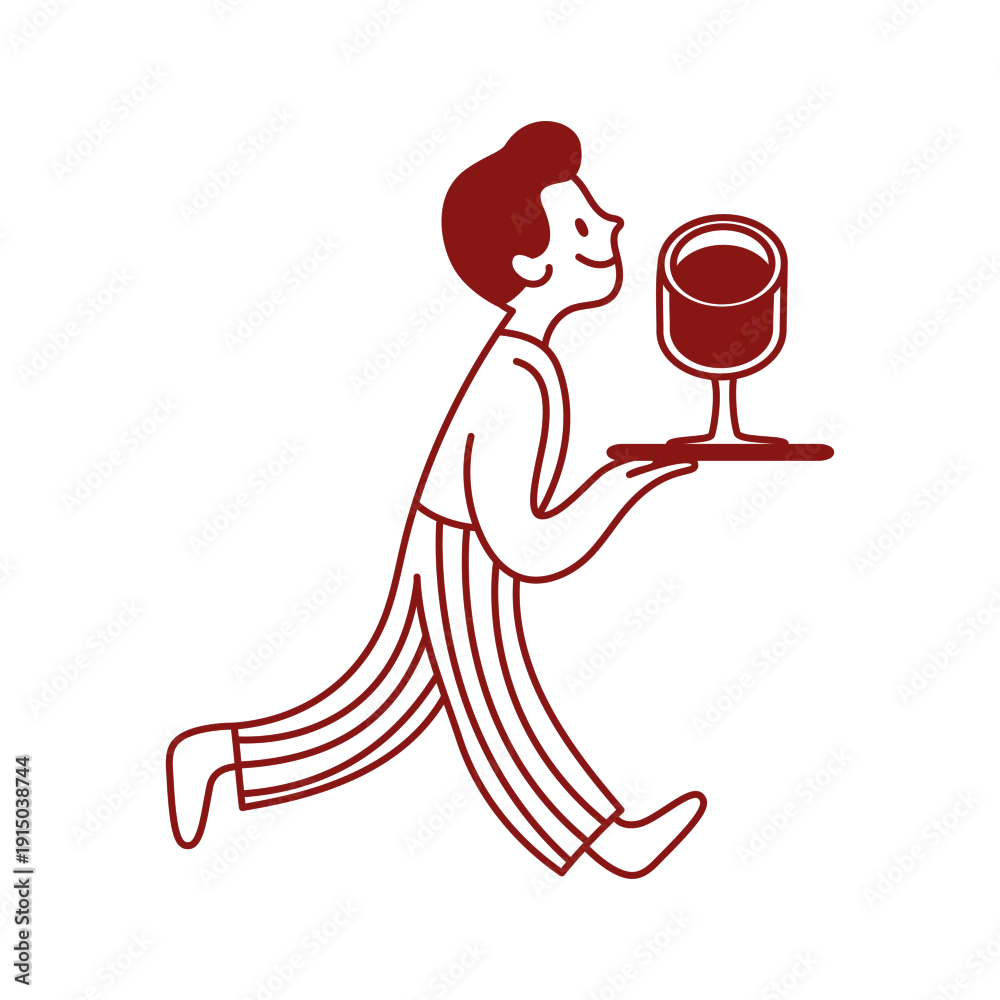 Fototapeta Vector naive graphic design logo template, cartoon mascot for wine bar and cafe, for advertising, branding, posters and banners, funny cartoon illustration - do przedpokoju - Picturewall.pl