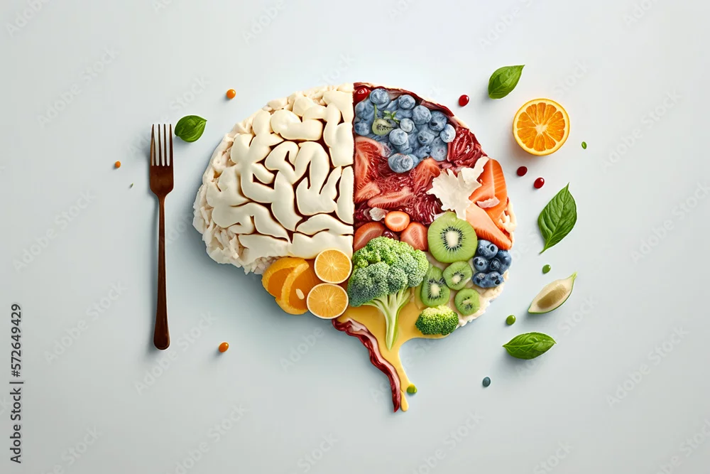 Fototapeta Brain with fruits, concept of healthy living and eating healthy food - do restauracji - Picturewall.pl