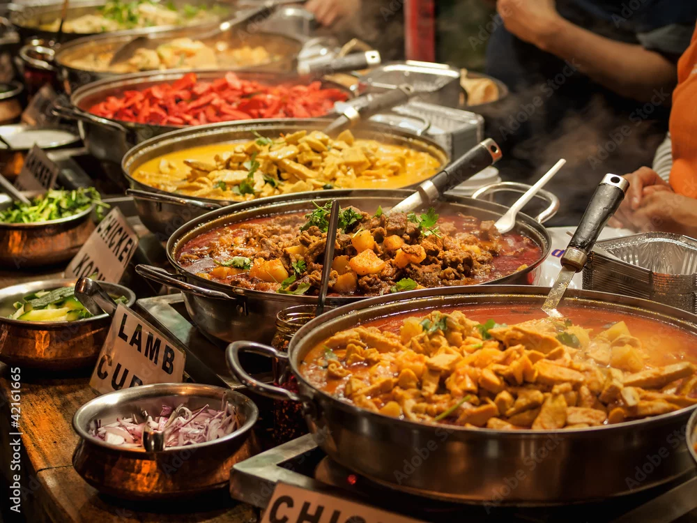 Fototapeta Orientalne jedzenie - indyjskie dania na wynos na londyńskim targu - do restauracji - Picturewall.pl