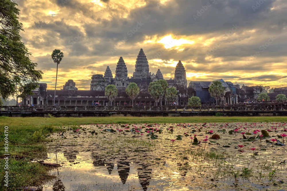 Fototapeta wschód słońca przy świątyni Angkor Wat, Kambodża - do salonu - Picturewall.pl