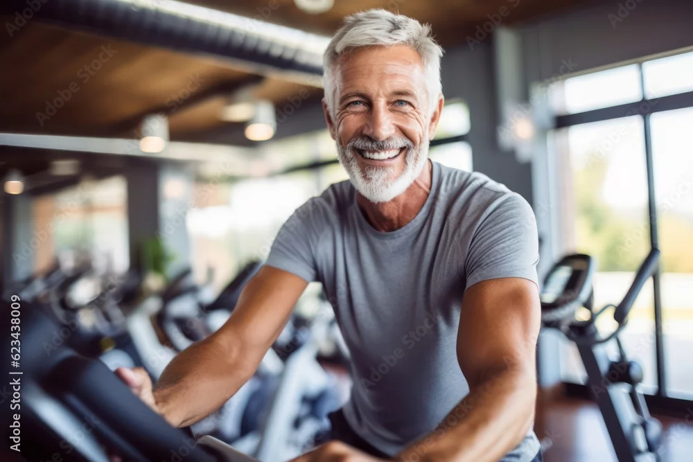 Fototapeta Portrait of senior man working out gym fitness, fitness concept. Senior healthy lifestyle with fitness gym and healthy life middle aged man - do siłowni - Picturewall.pl