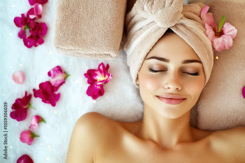 Fototapeta A mother and daughter having a spa day with facials and massages.