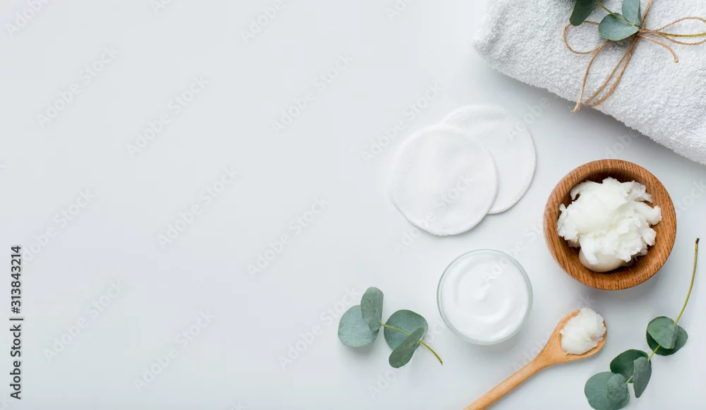 Fototapeta Eko naturalne masło kokosowe i krem nawilżający przygotowujący do domowego spa