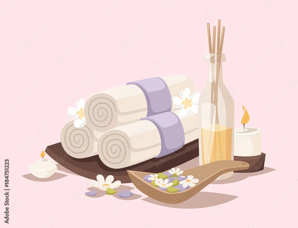 Fototapeta Spa vector icons treatment beauty procedures wellness spa-massage herbal cosmetics aroma spa stones towels and lotus flower illustration. - do spa - Picturewall.pl