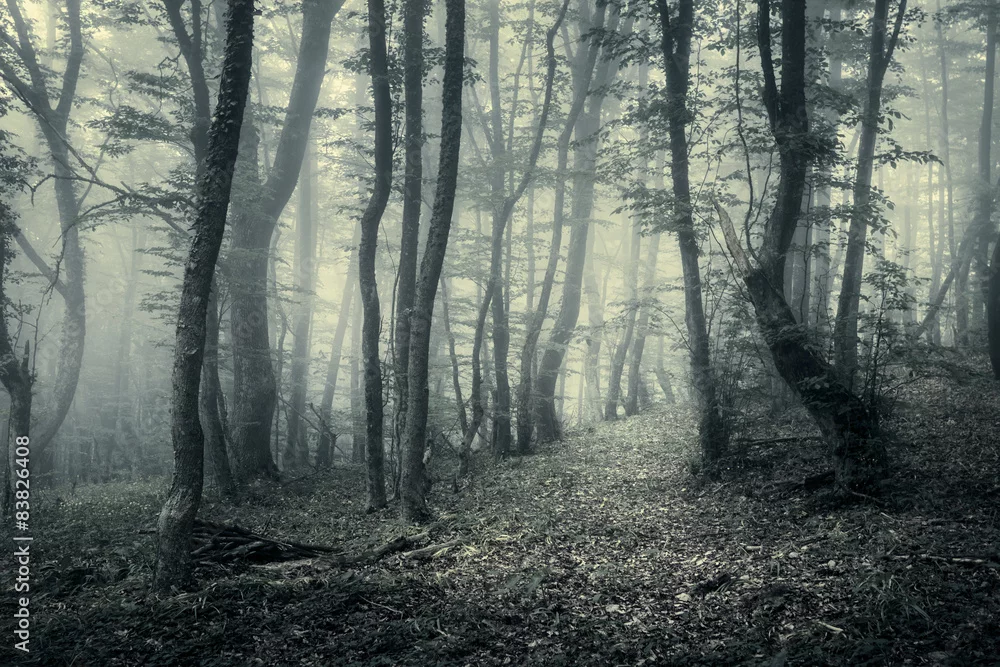 Fototapeta szlak przez tajemniczy, ciemny las - do sypialni - Picturewall.pl