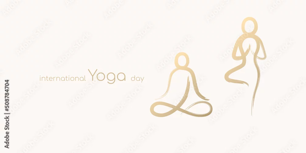 International yoga day, yoga body poses by abstract brush stroke paint gold isolated on white background. Vector illustration design for banner.