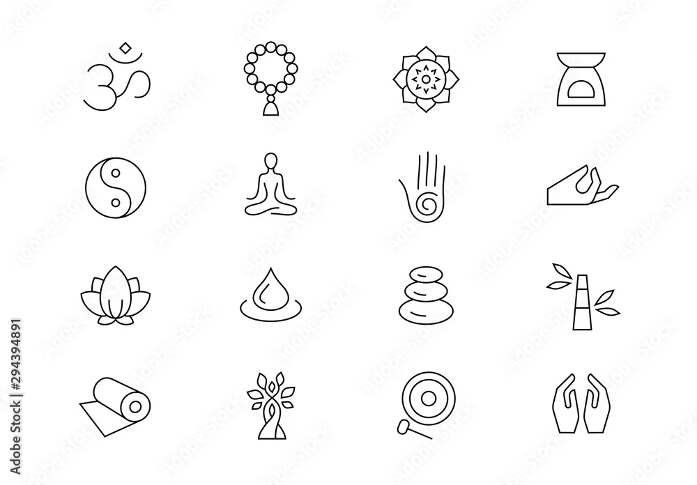 Fototapeta Meditation and yoga retreat thin line vector icons. Editable stroke - do szkoły jogi - Picturewall.pl