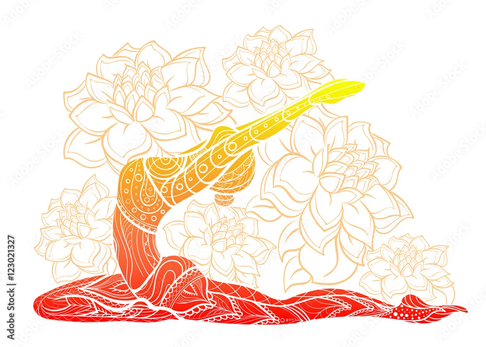 Fototapeta silhouette of yoga woman floral ornament. - do szkoły jogi - Picturewall.pl