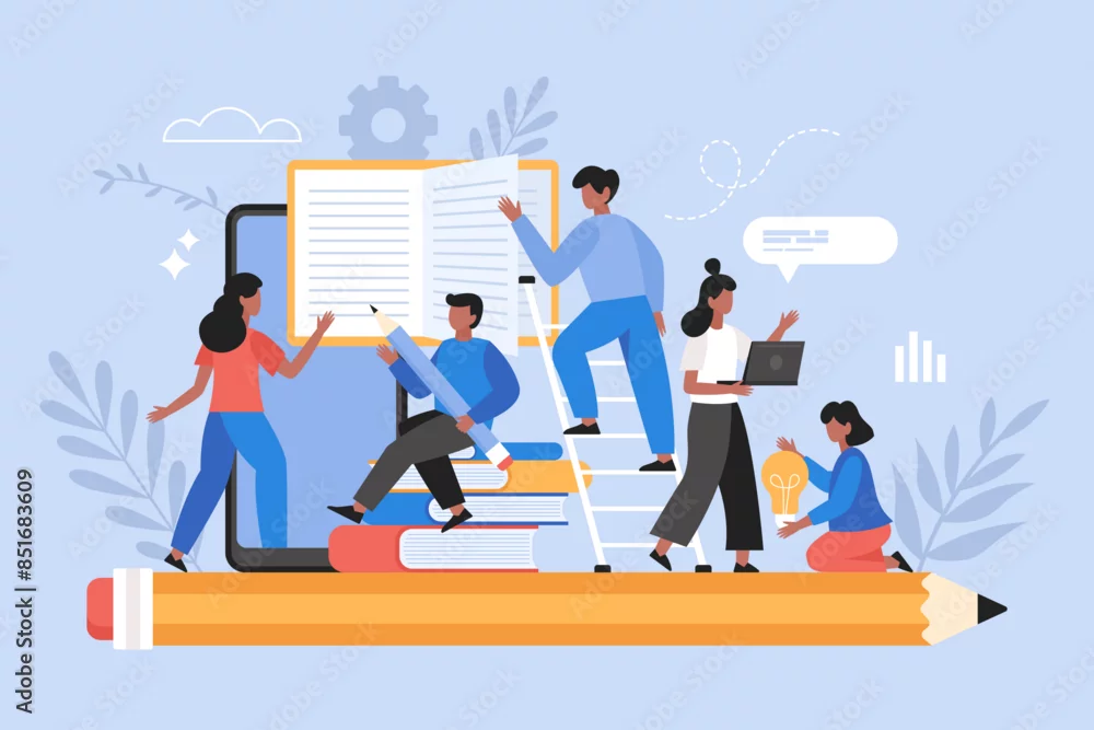 Fototapeta Back to school and education concept. Modern vector illustration of students studying online and reading books - do szkoły - Picturewall.pl