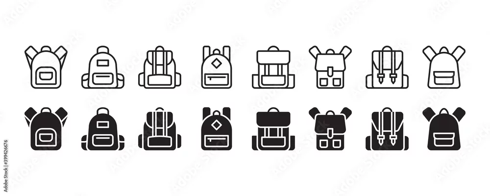 Fototapeta Backpack, school bag icon set. Vector graphic illustration. Suitable for website design, logo, app, template, and ui.