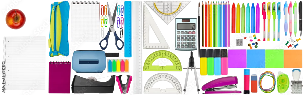 Fototapeta big set collection of colorful school office supplies stationery isolated white background study education business concept - do szkoły - Picturewall.pl