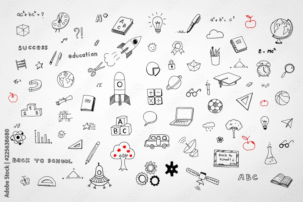 Fototapeta Stem education, children’s childhood creative idea and school education success concept with student’s hand drawing doodle on white background