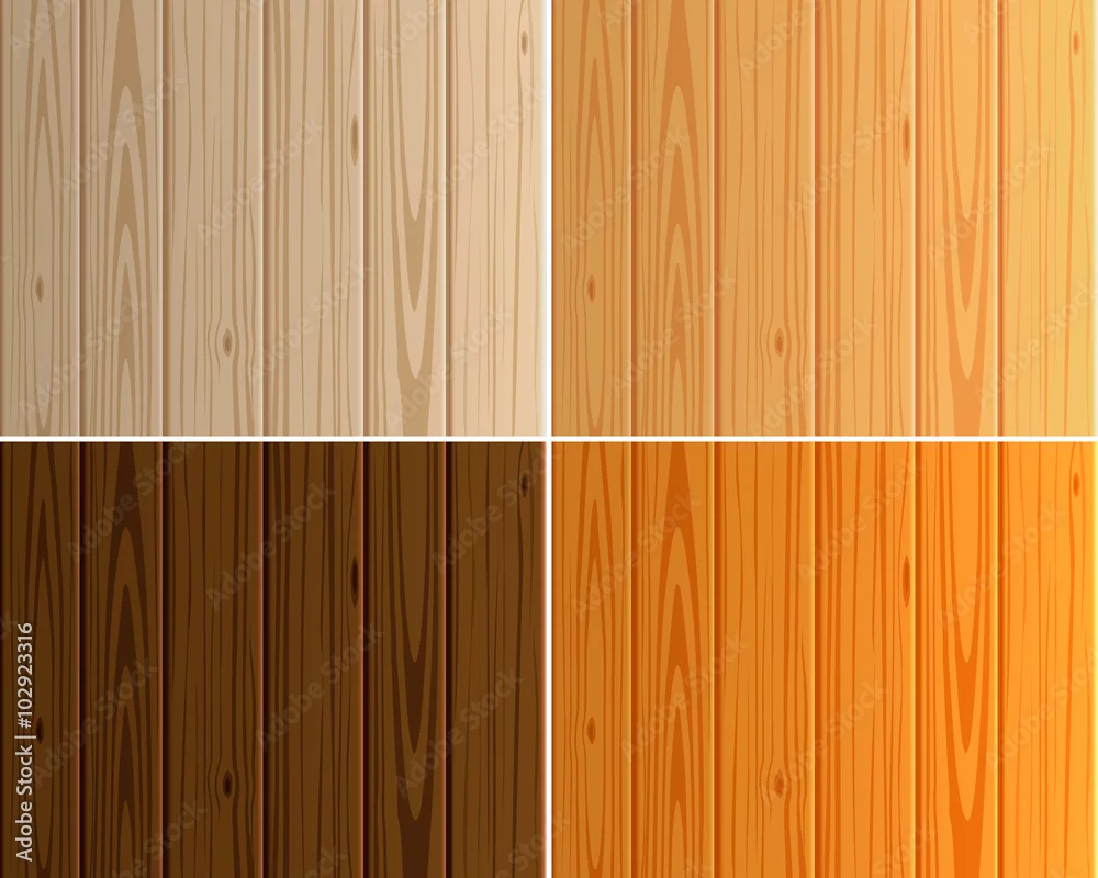 Wood texture vector background panels with grain. Set of wood light and dark boards. Floor collection in warm colour. Wood pattern similar to pine.