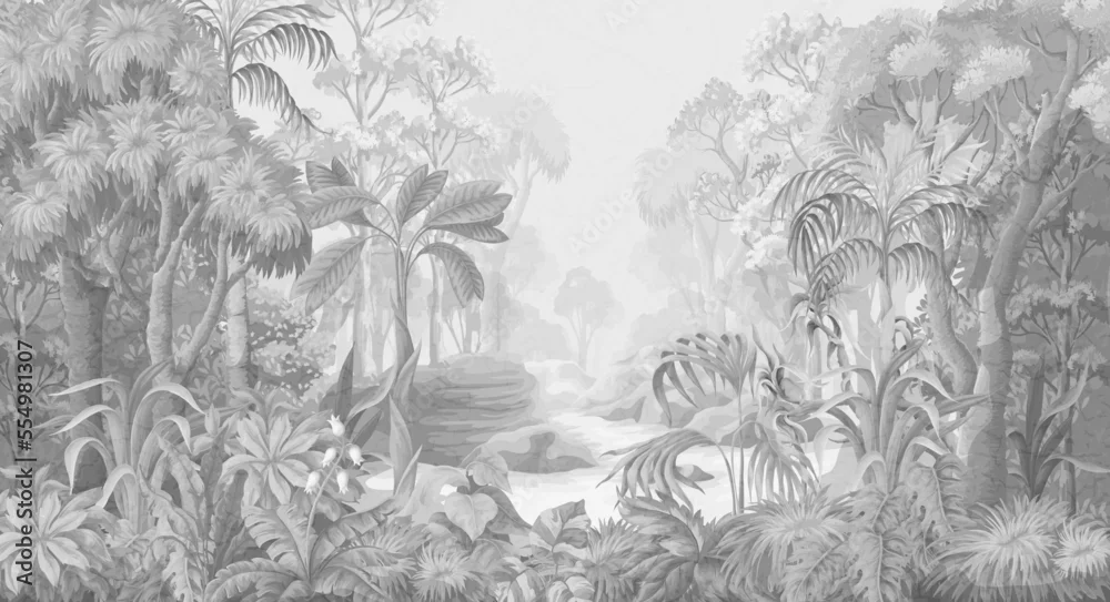 Fototapeta Monochromatyczny krajobraz dżungli.