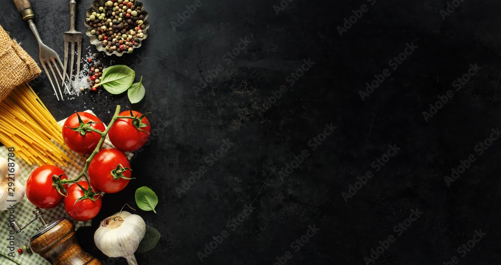 Fototapeta Italian food background with ingredients