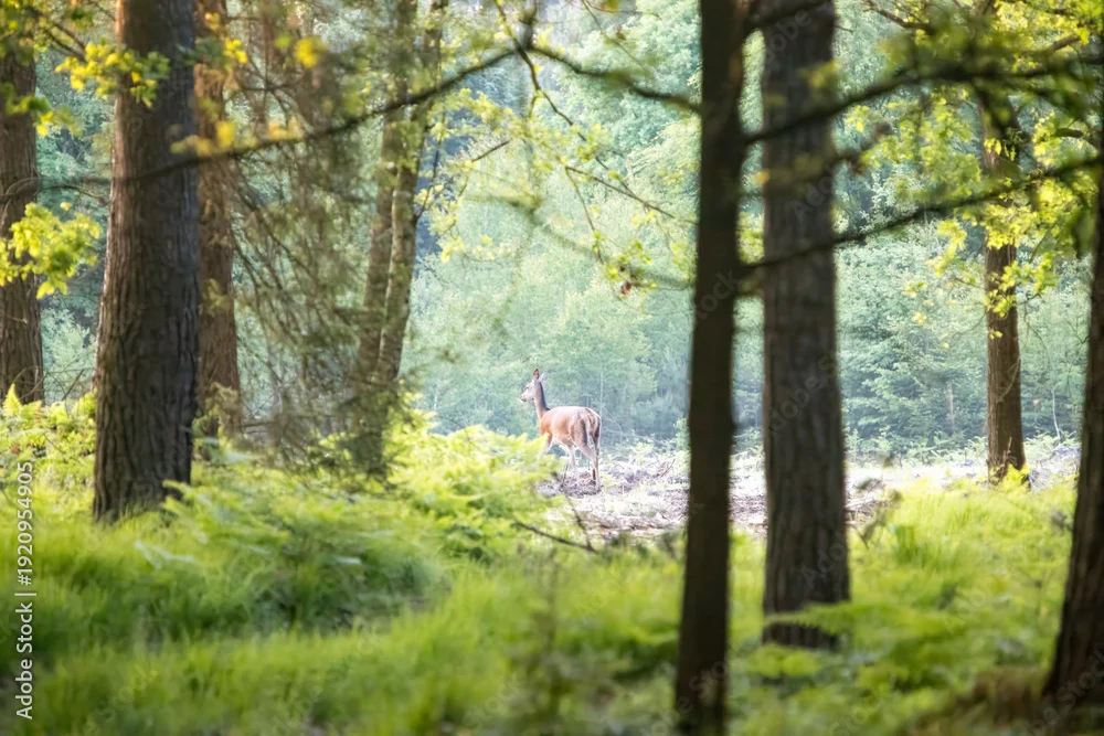 Fototapeta Piękna Łania w lesie, samica jelenia - jelenie - Picturewall.pl
