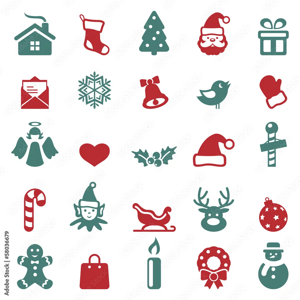 Fototapeta Christmas icons set - jelenie - Picturewall.pl