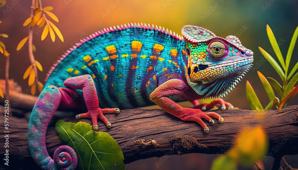 Fototapeta Beautiful of chameleon panther, chameleon panther on branch, chameleon panther closeup. digital ai art