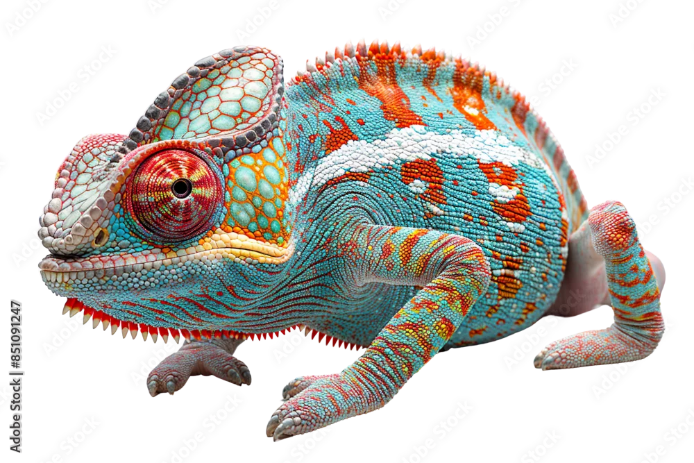 Fototapeta Blue chameleon isolated on white background, transparent background