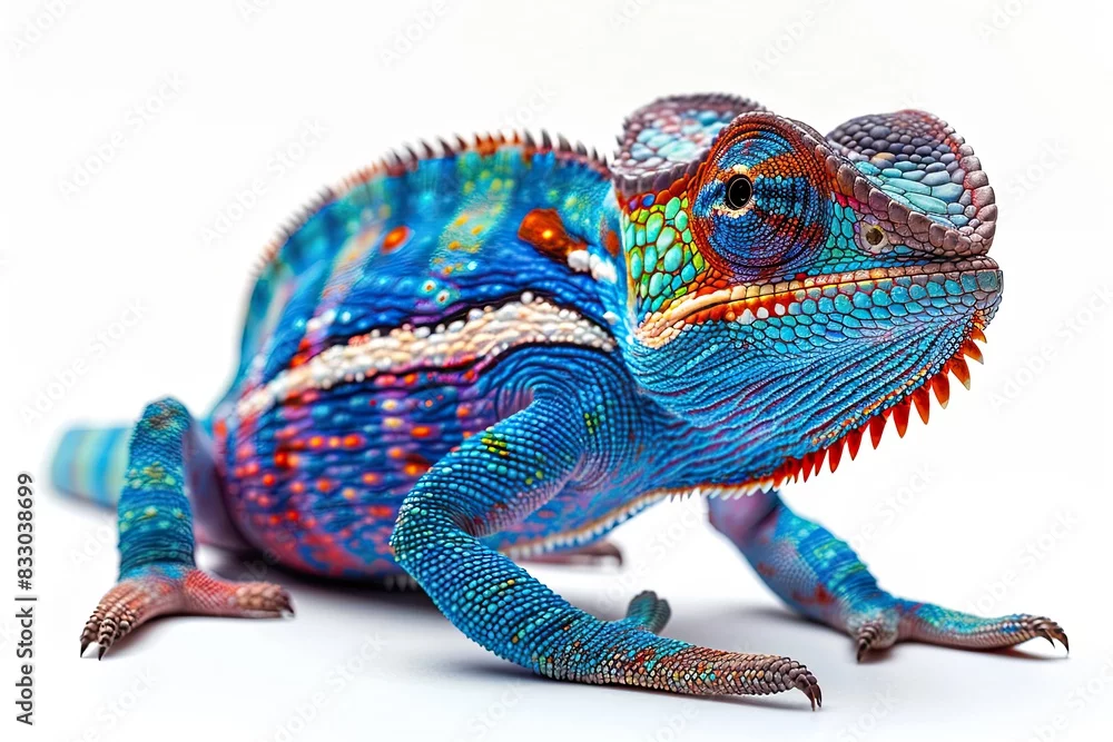 Fototapeta Blue lizard Panther chameleon isolated on white background