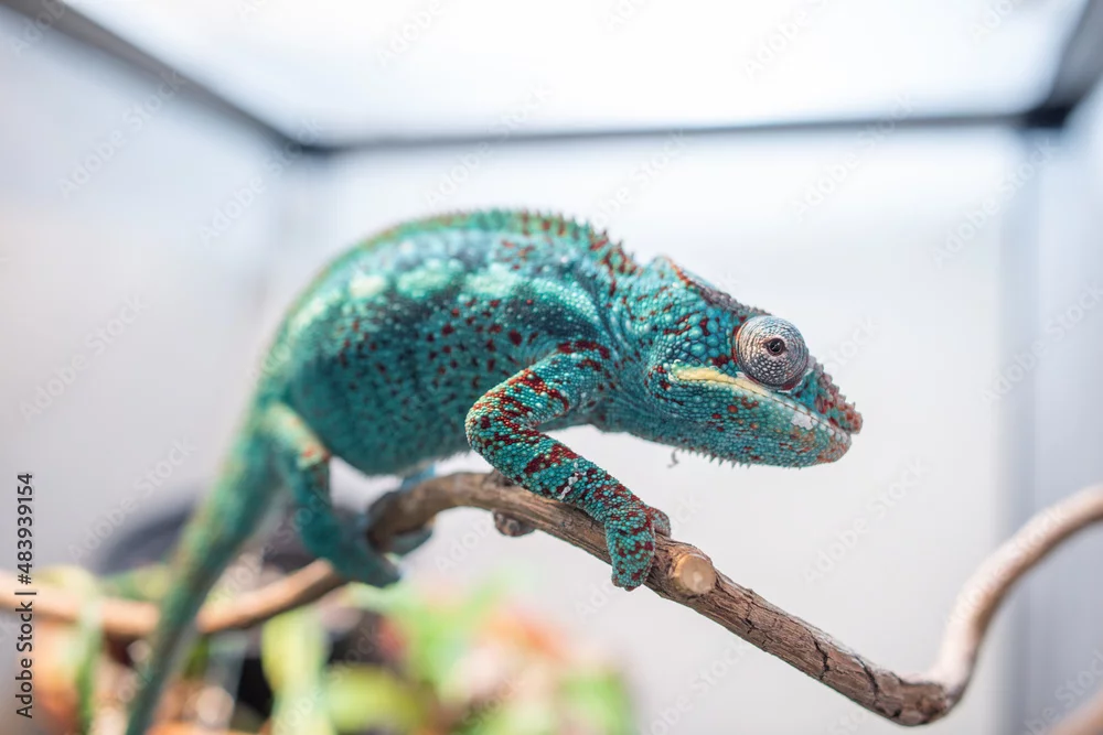Fototapeta impressive exotic vertebrate chameleon with incredible colors moves very slowly - kameleony - Picturewall.pl
