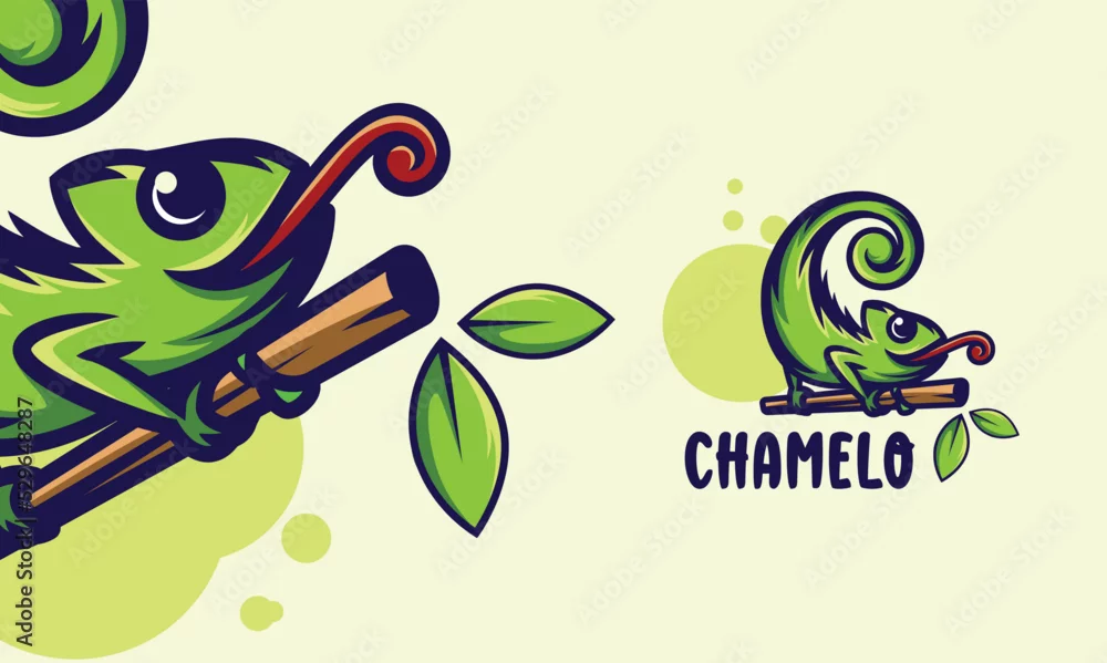 Fototapeta lizard chameleon on the tree branch cartoon premium vector illustration