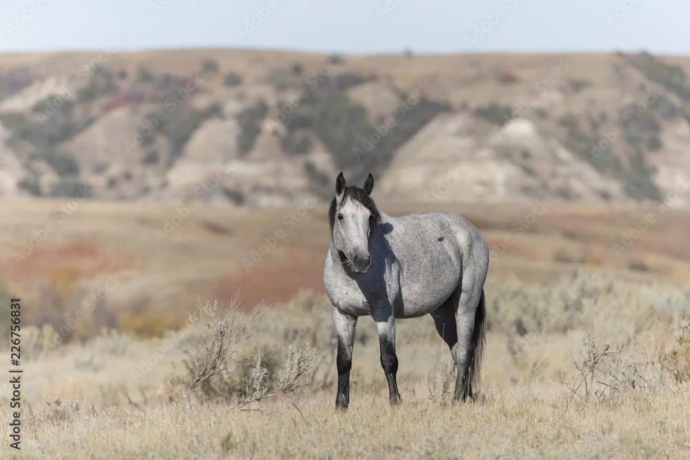 Fototapeta Dziki mustang przy Theodore Roosevelt parkiem narodowym w Północnym Dakota, usa
