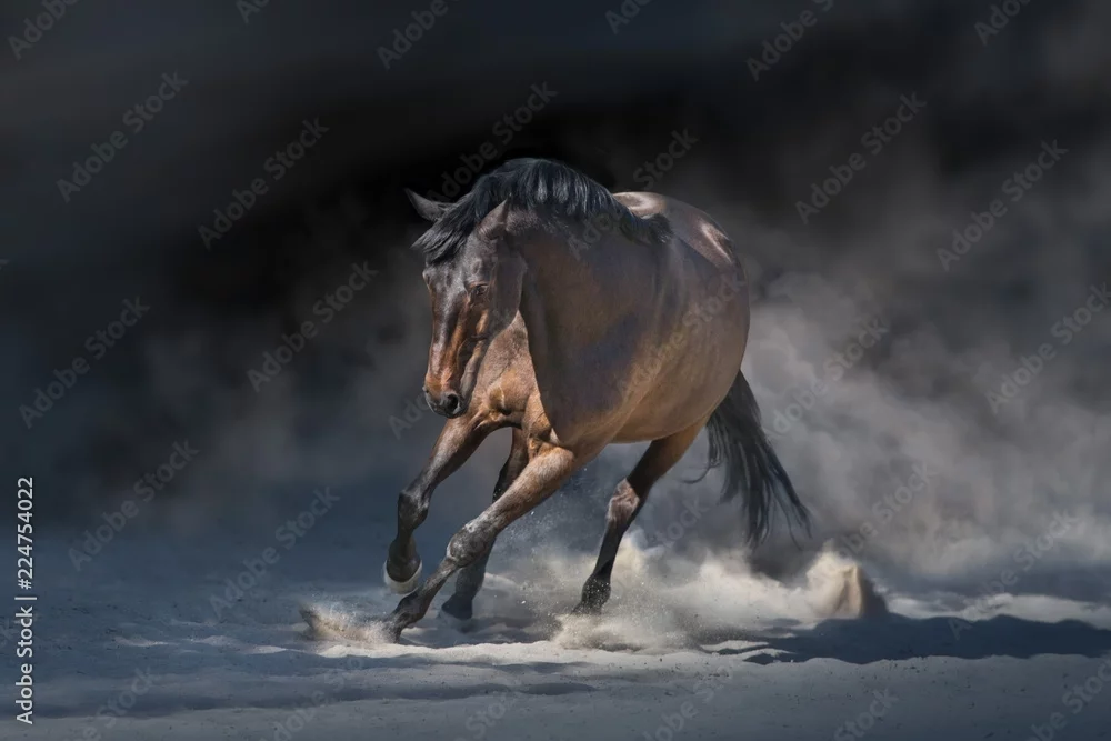 Fototapeta Ogier w ruchu w pustynnym pyle na dramatick tle