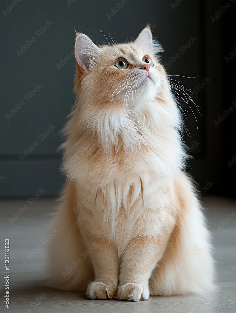 Fototapeta Beautiful orange cat sitting gracefully indoors