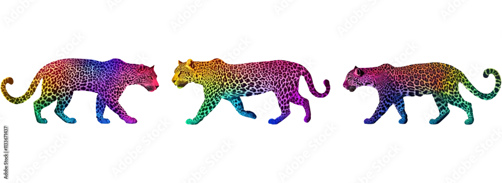 Fototapeta Colorful Rainbow Leopard Silhouette on Transparent Background