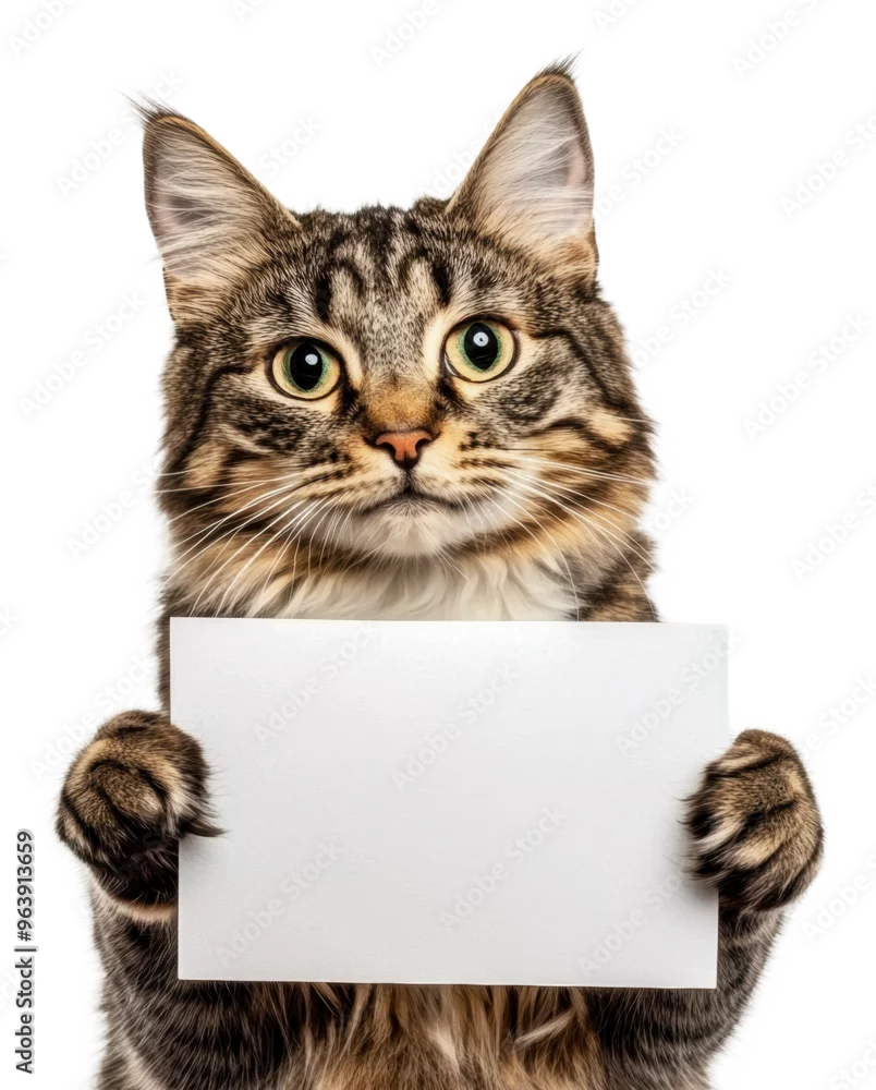 Fototapeta Cat with a blank sign on white背景, cut out - stock png.