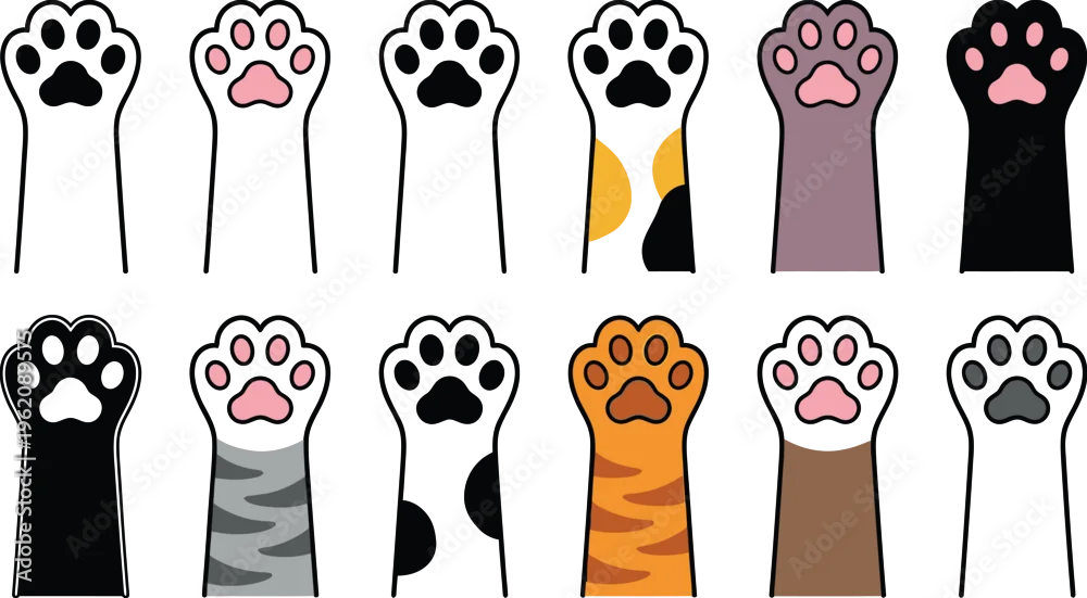 Fototapeta Collection of diverse feline paw prints in various colors and patterns
