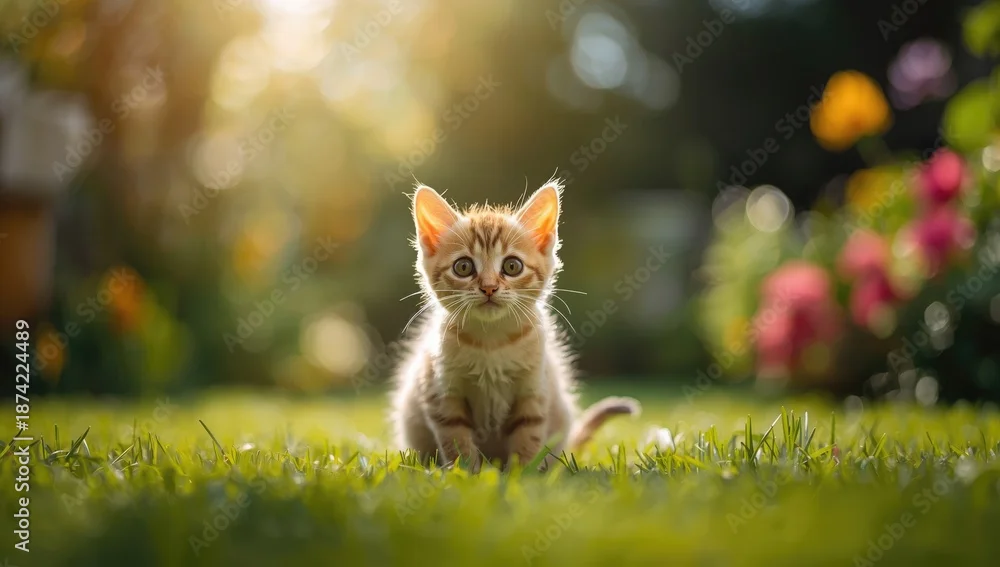 Fototapeta Cute feline with a goofy expression reacting to an unexpected sight, highlighting animal curiosity