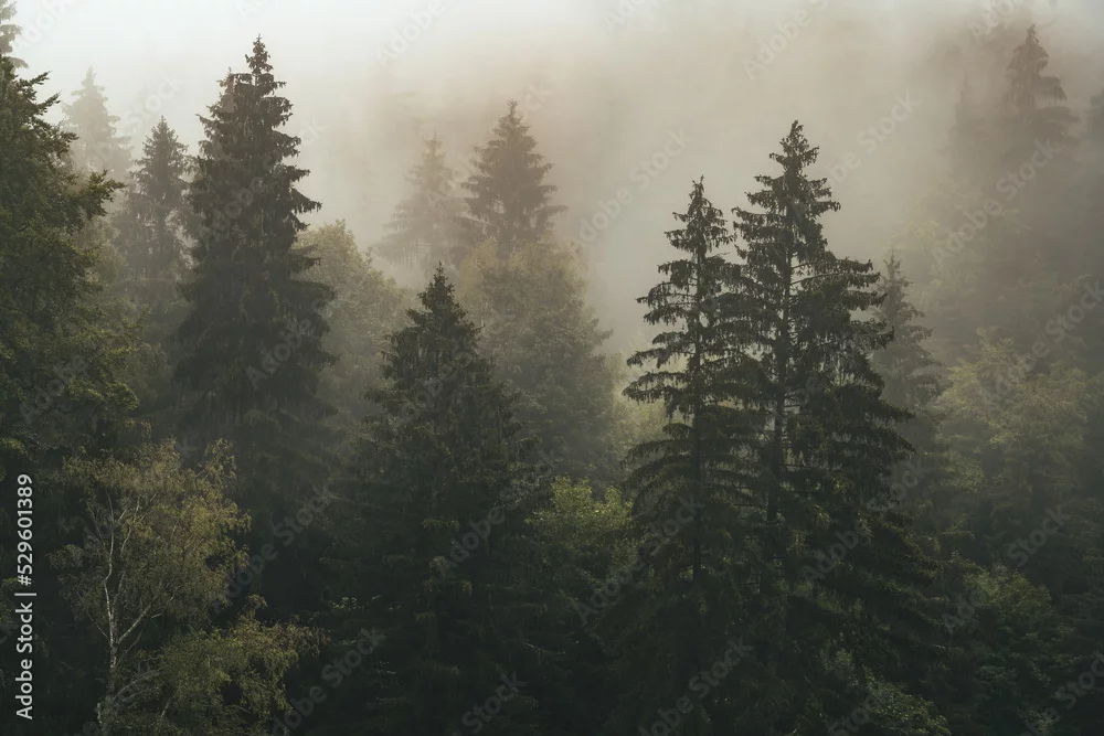 Fototapeta drzewa we mgle - krajobrazy - Picturewall.pl