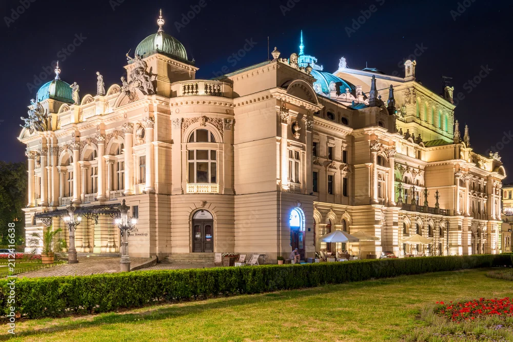 Fototapeta Wieczorem widok teatru dramatycznego w Krakowie