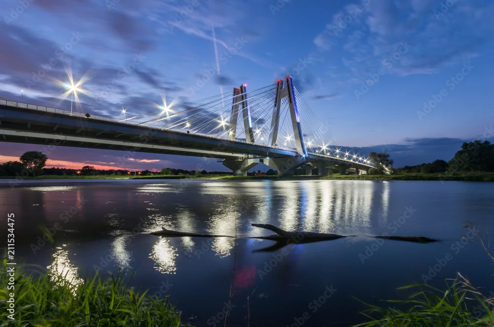 Fototapeta nowoczesny most nad Wisłą, Kraków, Polska, oświetlony w nocy