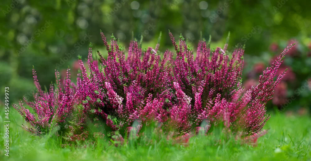 Fototapeta różowe wrzosy w ogrodzie - kwiaty - Picturewall.pl