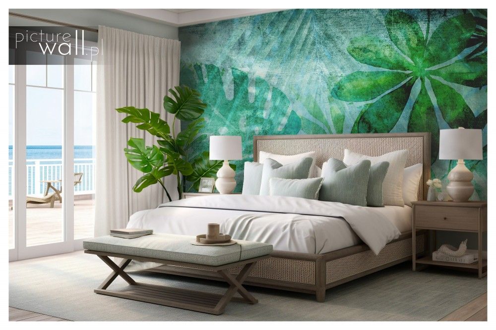 Zielona Kompozycja to autorska fototapeta przedstawiająca harmonijną kompozycję roślin w odcieniach zieleni. Wzór wprowadza do sypialni atmosferę spokoju i naturalnej świeżości, doskonale współgrając z drewnianymi elementami, naturalnymi tkaninami oraz minimalistycznym wystrojem wnętrza.