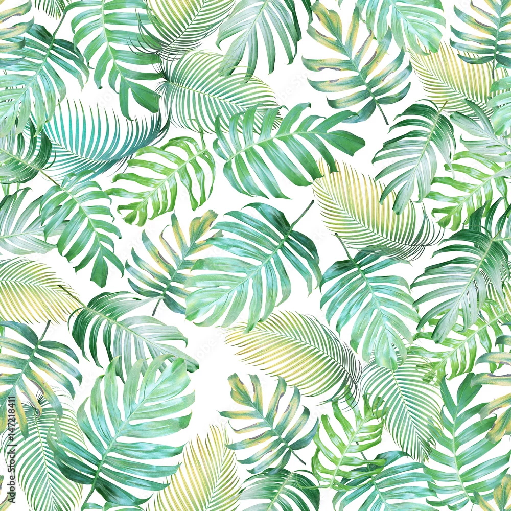 Fototapeta Tropikalne liście wzór filodendronu i palmy Monstera pozostawia w jasnozielono-żółty kolor, tropikalny tło.