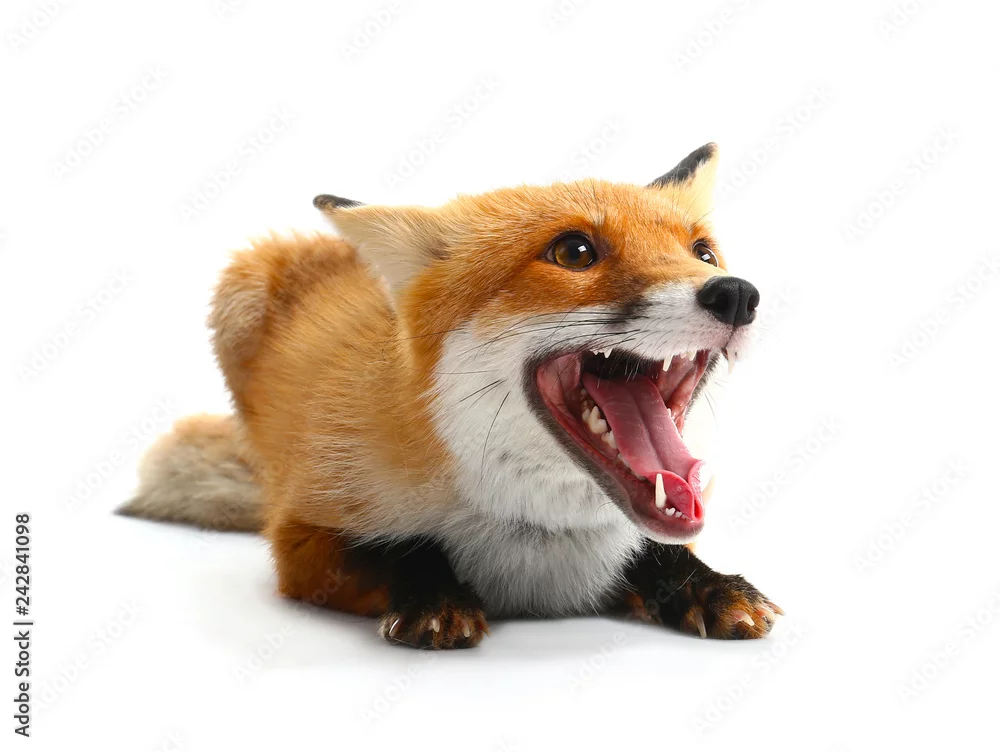 Fototapeta Śliczny śmieszny lis na białym tle - lisy - Picturewall.pl