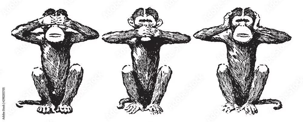 Fototapeta Trzy mądrej małpy, rocznik ilustracja. - małpy - Picturewall.pl
