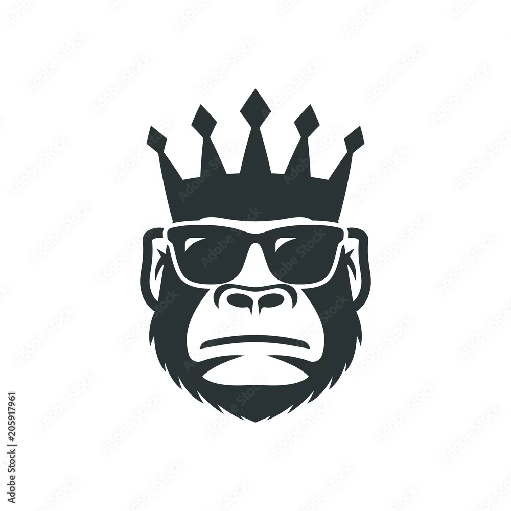 Fototapeta Fajna małpa w okularach przeciwsłonecznych i koronie. - małpy - Picturewall.pl