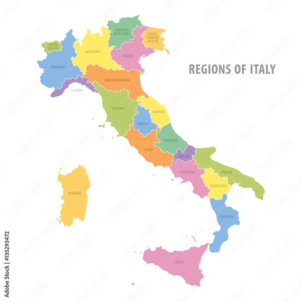 Fototapeta Administracyjna kolor wektorowa mapa Włoch - mapa polityczna - Picturewall.pl