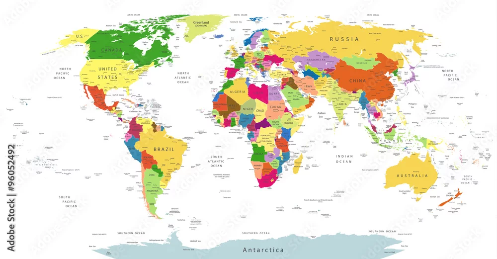 Fototapeta Bardzo Szczegółowa Polityczna Mapa Świata Na Białym