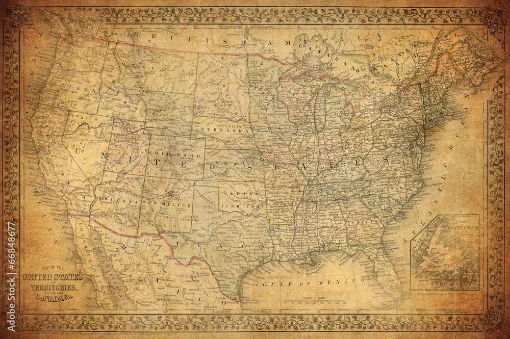 Fototapeta Archiwalne mapy Stanów Zjednoczonych 1867