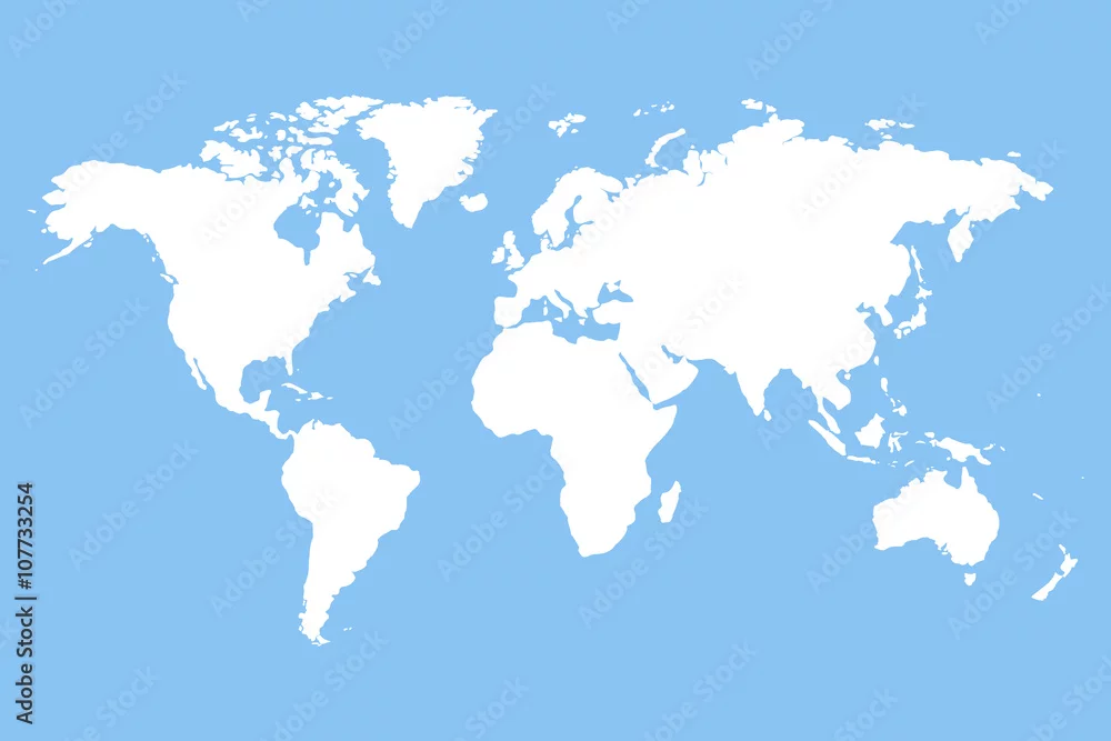 Fototapeta Biała pusta mapa świata. - mapy - Picturewall.pl