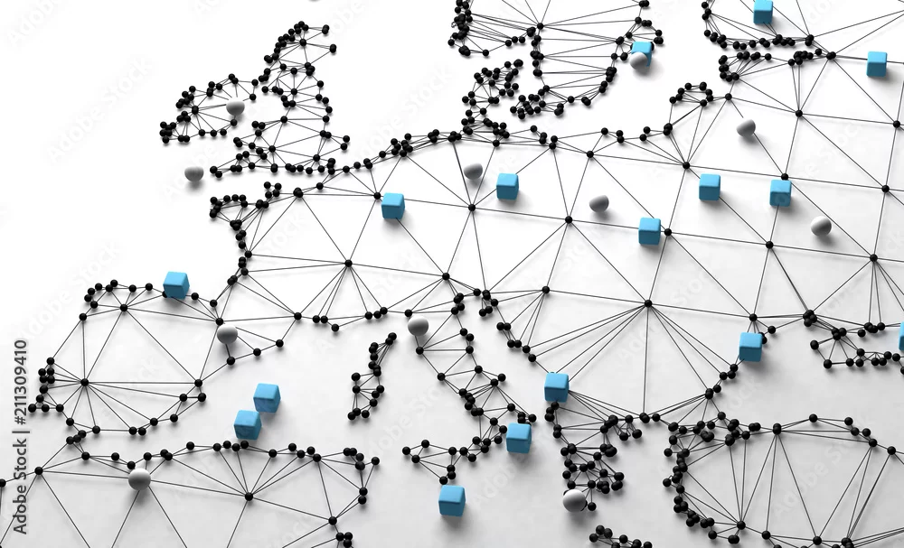 Fototapeta Diseño de mapa del mundo en fondo blanco.Concepto de logística y acuerdos comerciales internacionales.Red de negocios de empresa multinacional y libre comercio